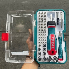Bộ tua vít đa năng TOTAL TACSD30556 gồm 55 chi tiết gồm tay vặn tự động và đầu vít các loại – hỗ trợ tháo lắp, sửa chữa thiết bị điện tử, gia dụng, máy móc DIY. Thiết kế gọn gàng, thao tác nhanh, phù hợp từ gia đình đến thợ kỹ thuật chuyên nghiệp.