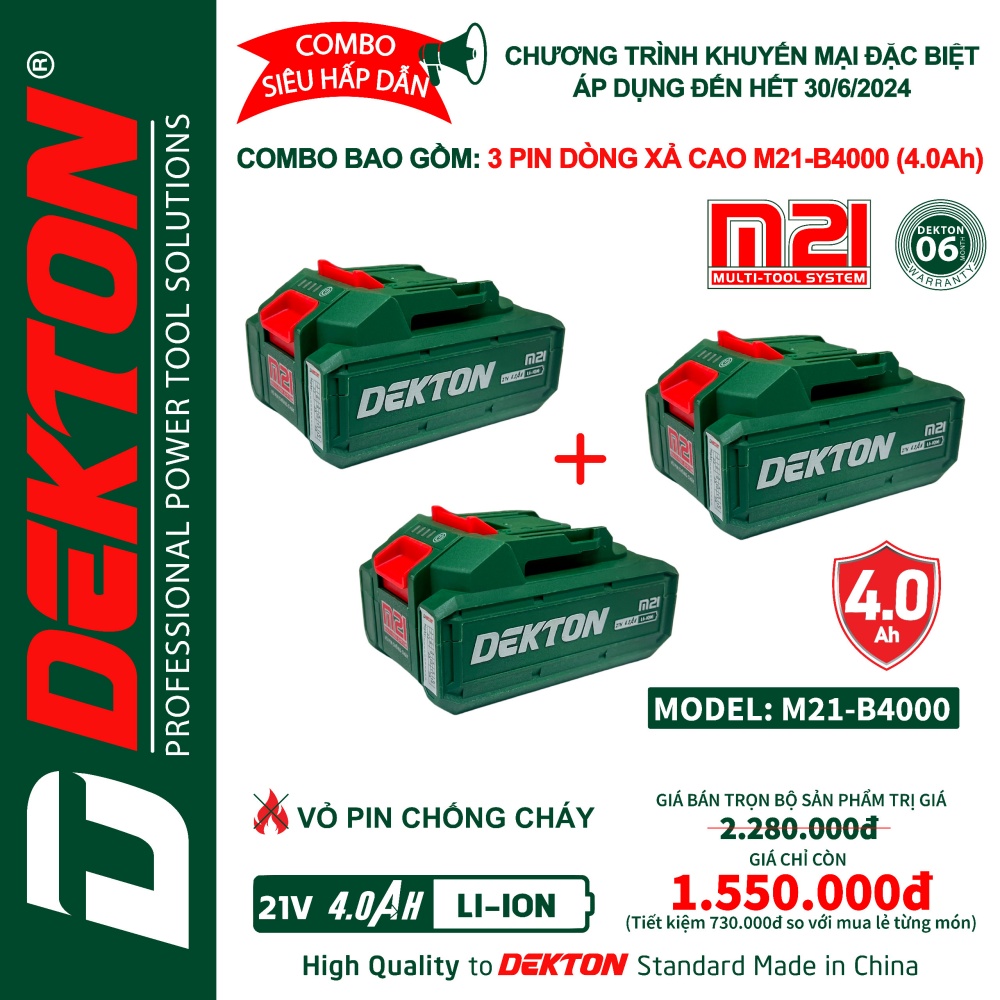 Mua combo 3 pin dòng xả cao M21-B4000 (4.0Ah) chỉ với giá 1.550.000₫, tiết kiệm 730.000₫ so với mua lẻ từng món.