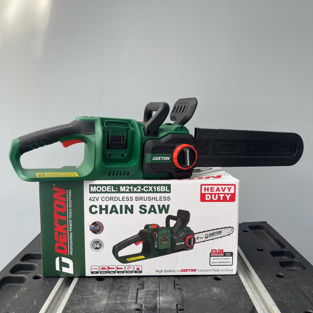Máy cưa xích, máy cưa xích dùng pin, Dekton M21X2-CX16BL, động cơ không chổi than, tốc độ cắt cao, cắt tỉa cây cảnh, cưa gỗ, bảo hành 6 tháng