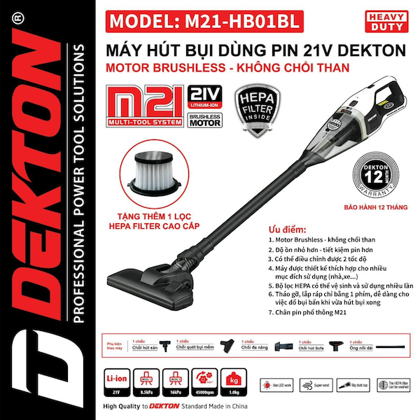 Ống nối dài, chổi hút sàn, chổi hút bụi mềm, chổi đa năng, chổi hút Sofa, đầu hút kẽ hẹp, và các phụ kiện tiêu chuẩn khác. |