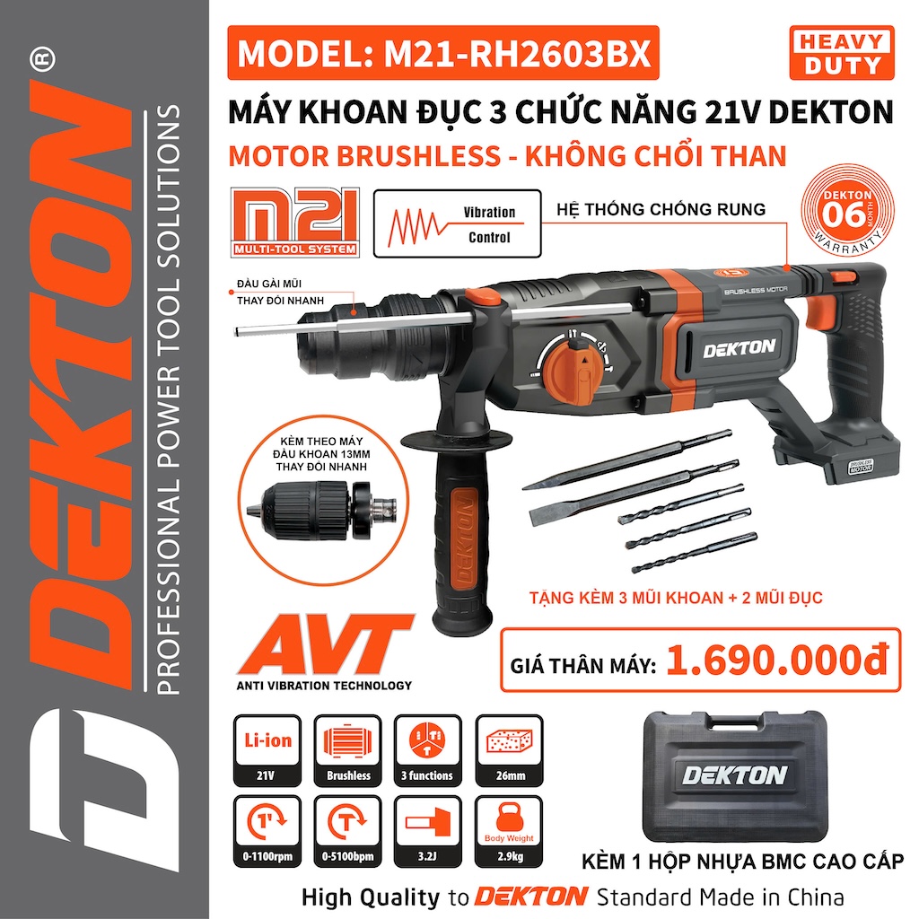 Giới Thiệu Máy Khoan Đục 3 Chức Năng Dekton M21-RH2603BX
