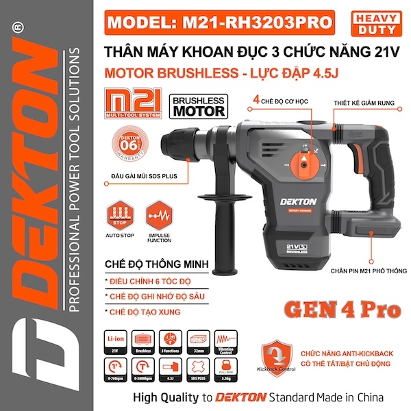 | Tính năng an toàn | Chức năng Anti-Kickback (Chống giật) - Có thể Tắt/Bật chủ động (Kickback Control) |