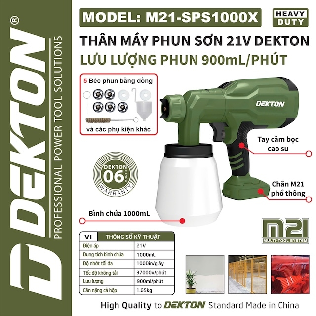 Máy Phun Sơn Dùng Pin Phổ Thông 21V Dekton M21-SPS1000