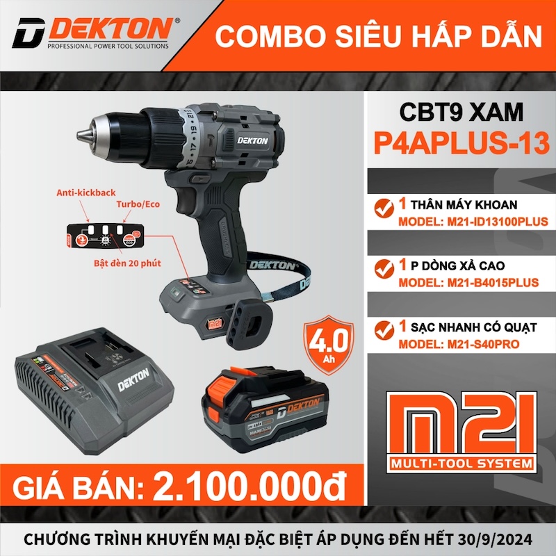 1. Máy Khoan Dekton 100Nm M21-ID13100PLUS (phiên bản ECO), chân pin phổ thông