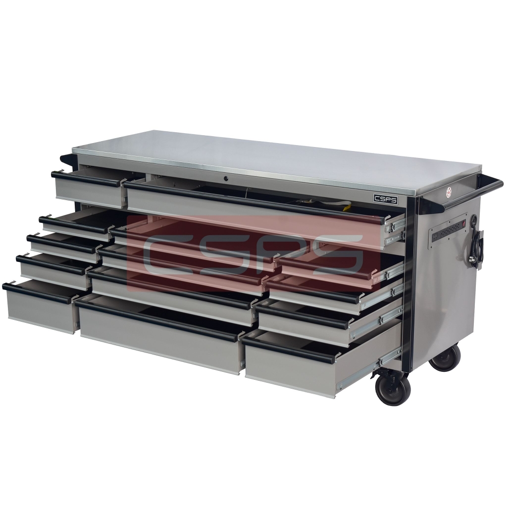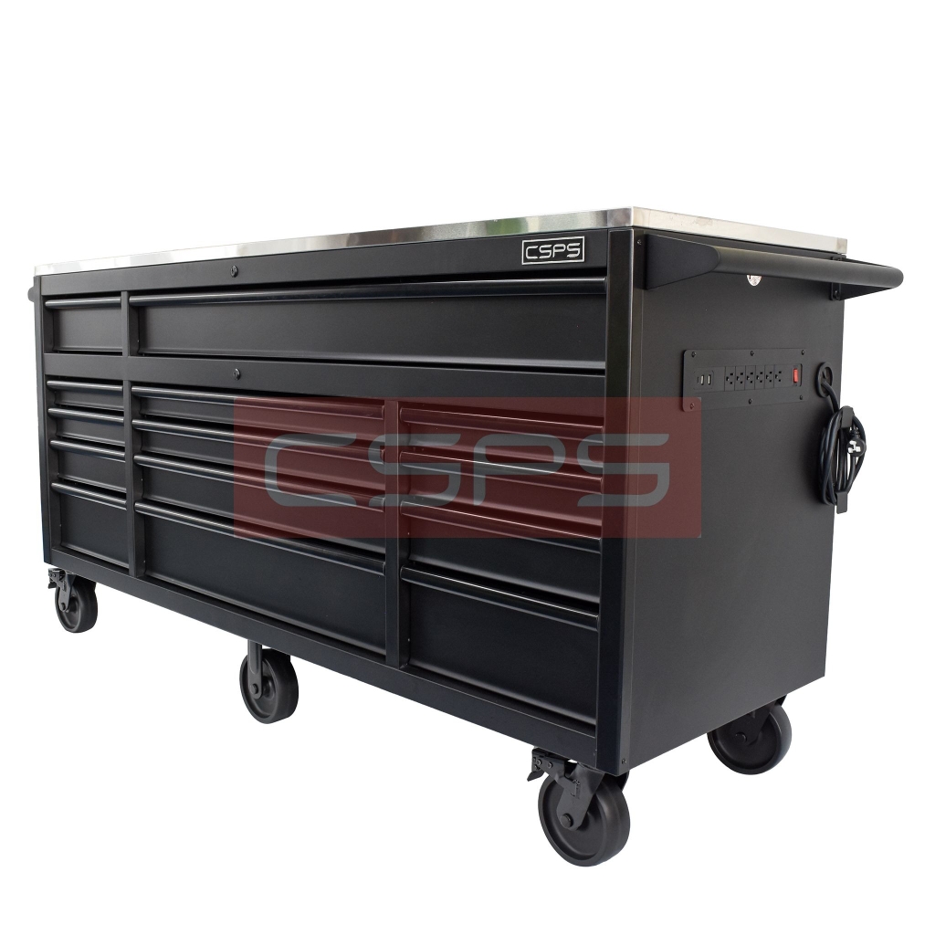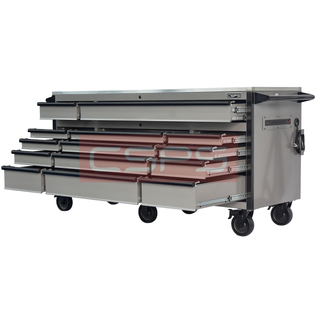 Tủ dụng cụ CSPS 183cm - 14 hộc kéo màu đen, giúp bạn sắp xếp khu vực làm việc hiệu quả, là một trang bị cần thiết cho nhà máy, garage, cửa hàng hay văn phòng làm việc / CSPS tool cabinet 183cm - 14 drawers Matte Black which is suitable for workshop, factory, garage, shop, office… will help you organize working area efficiently.
