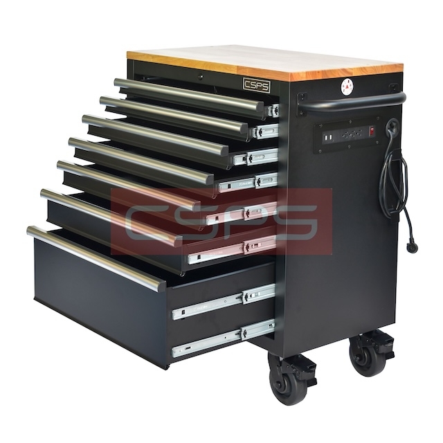 Tủ dụng cụ CSPS 76cm - 07 hộc kéo màu đen nhám, giúp bạn sắp xếp khu vực làm việc hiệu quả, là một trang bị cần thiết cho nhà máy, garage, cửa hàng hay văn phòng làm việc / CSPS tool cabinet 76 cm – 07 drawers which is suitable for workshop, factory, garage, shop, office… will help you organize working area efficiently.